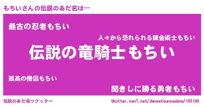 | 意味不明あだ名 | 『自称もちい』『ペロリンもちい』 |