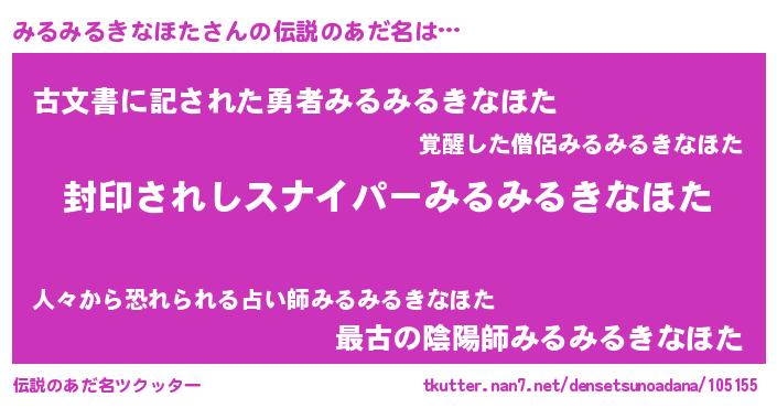 | 意味不明あだ名 | 『自称みるみるきなほた』 |