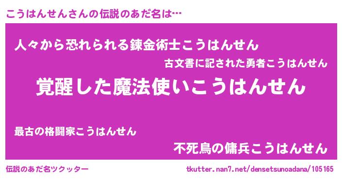 | ヒーロー風カッコイイあだ名 | 『天弓騎士コウ』『愛の使者こうはんせん』 |