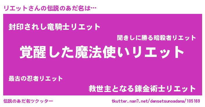 | 意味不明あだ名 | 『住所不定無職リエット(10歳)』 |