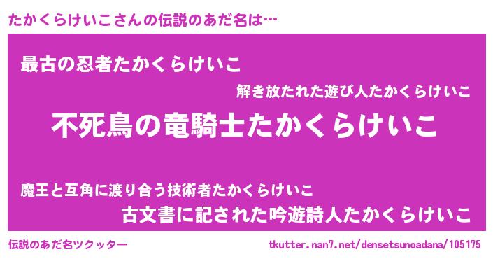 | ヒーロー風カッコイイあだ名 | 『スーパータカクラケイコ』 |
