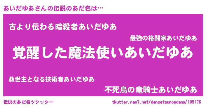 | 男性向けラノベタイトル風あだ名 | 『あいだゆあに滅ぼされるだけの簡単なお仕事です』 |