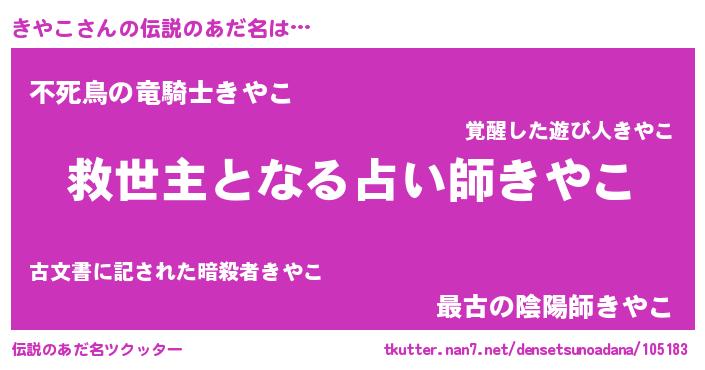 | ヒーロー風カッコイイあだ名 | 『天空の使者きやこ』『スーパーキヤコ』 |