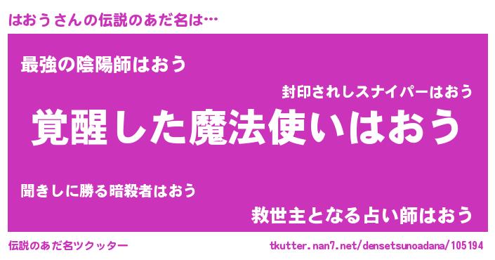 | 意味不明あだ名 | 『とにかく怪しいはおう』『自称はおう』 |