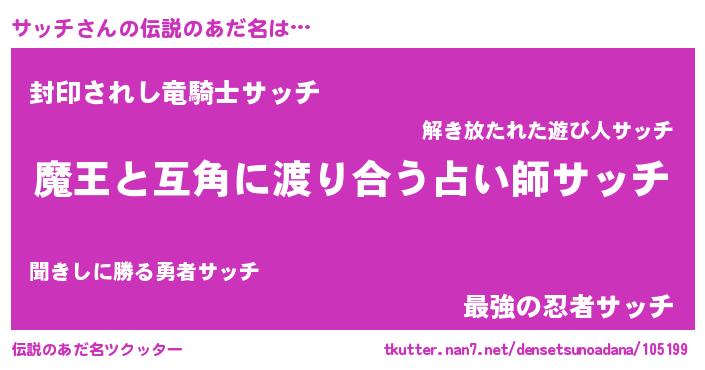| 女子向けラノベタイトル風あだ名 | 『サッチ恋絵巻』『サッチの雑貨屋さん』 |