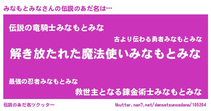 | 意味不明あだ名 | 『住所不定無職みなもとみな(8歳)』 |