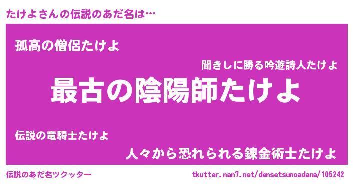 | 意味不明あだ名 | 『住所不定無職たけよ(89歳)』 |
