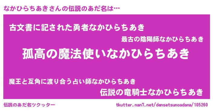 | 意味不明あだ名 | 『自称なかひらちあき』 |