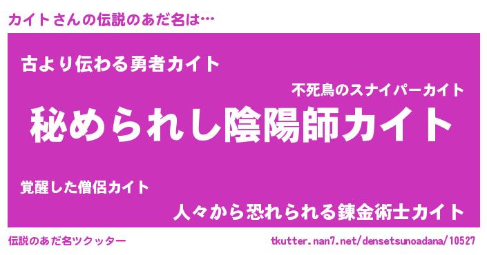 | ファンタジー風あだ名 | 『カークカイラー』『エターナルカイトー』 |