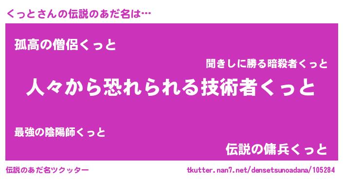 | 男性向けラノベタイトル風あだ名 | 『クットスレイヤー』『魔弾の王とくっと』 |