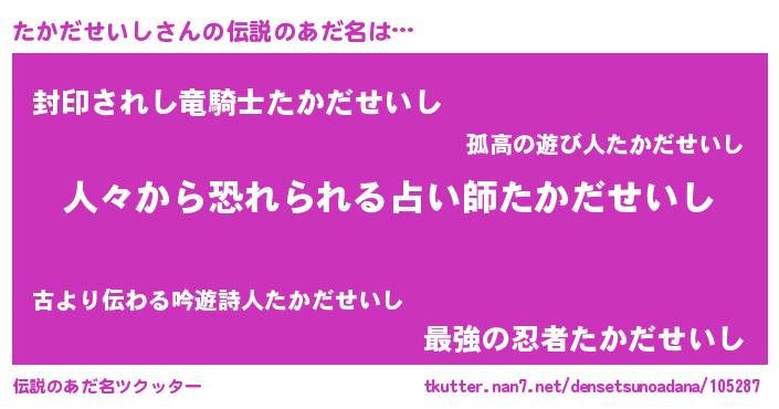 | ヒーロー風カッコイイあだ名 | 『友情の使者たかだせいし』 |
