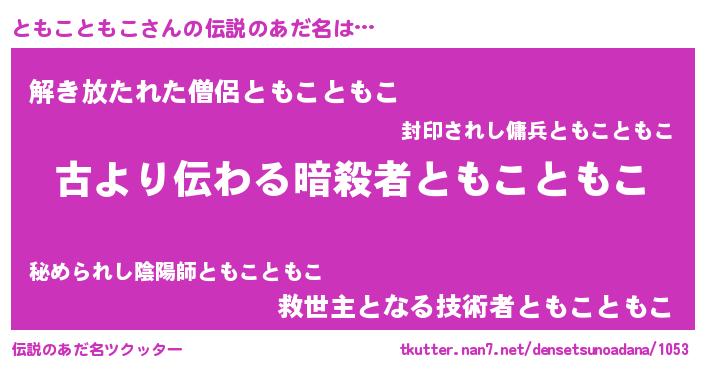 | ファンタジー風あだ名 | 『トモディッシュ』『ゼトモトゥ』 |