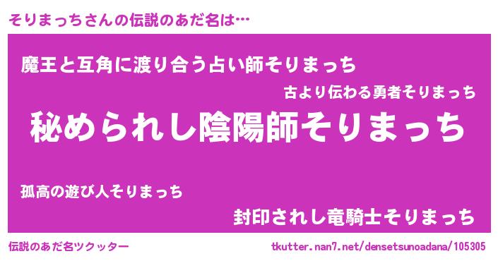 | 意味不明あだ名 | 『そりまっちフォーエバー』 |