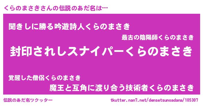 | 恥ずかしいあだ名 | 『プリティーくらのまさき』『くらちん』 |
