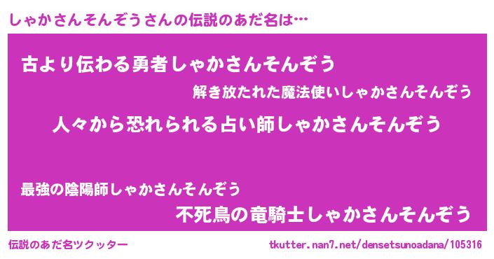 | ヒーロー風カッコイイあだ名 | 『正義の使者しゃかさんそんぞう』 |