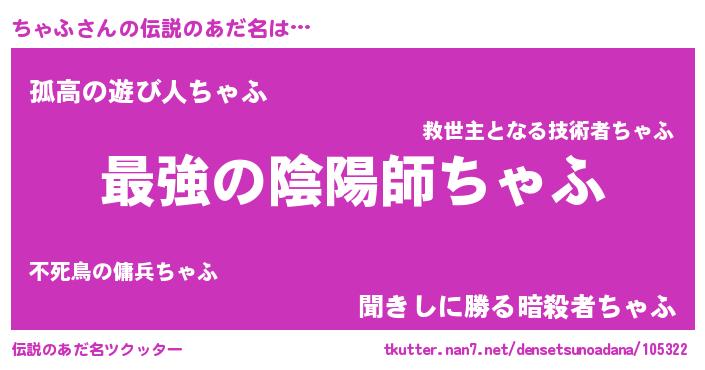| 意味不明あだ名 | 『住所不定無職ちゃふ(93歳)』『自称ちゃふ』 |
