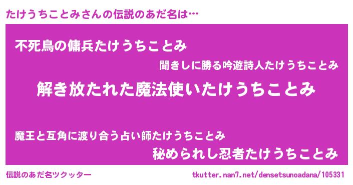 | 意味不明あだ名 | 『とにかく怪しいたけうちことみ』 |