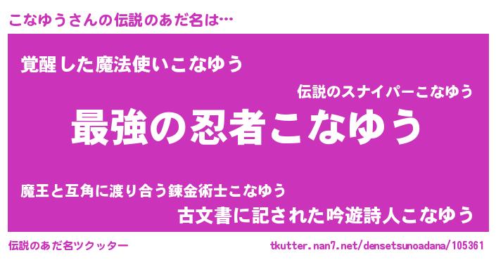 | 女子向けラノベタイトル風あだ名 | 『闇のこなゆう』『こなゆうの雑貨屋さん』 |