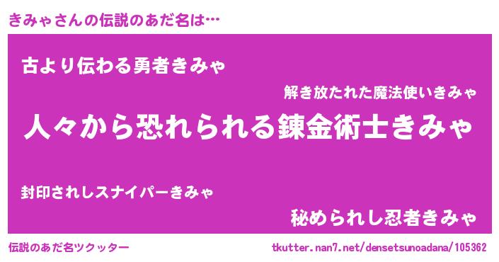 | ヒーロー風カッコイイあだ名 | 『正義の使者きみゃ』『ネオキミャ』 |