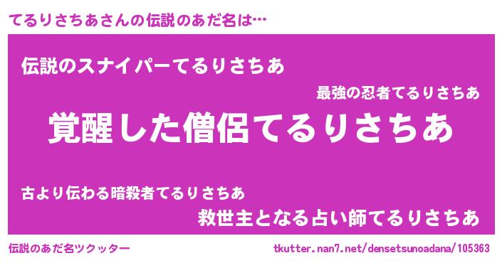 | 意味不明あだ名 | 『住所不定無職てるりさちあ(39歳)』 |