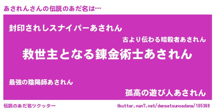 | 男性向けラノベタイトル風あだ名 | 『ノーゲーム・ノーアサレン』 |