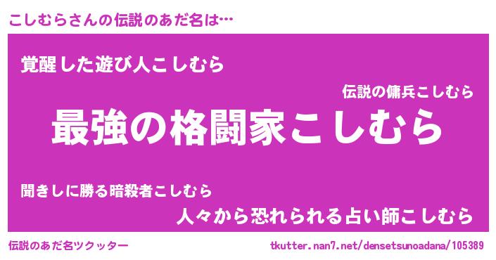 | ヒーロー風カッコイイあだ名 | 『ウルトラこしむらマン』『炎刃騎士コシ』 |