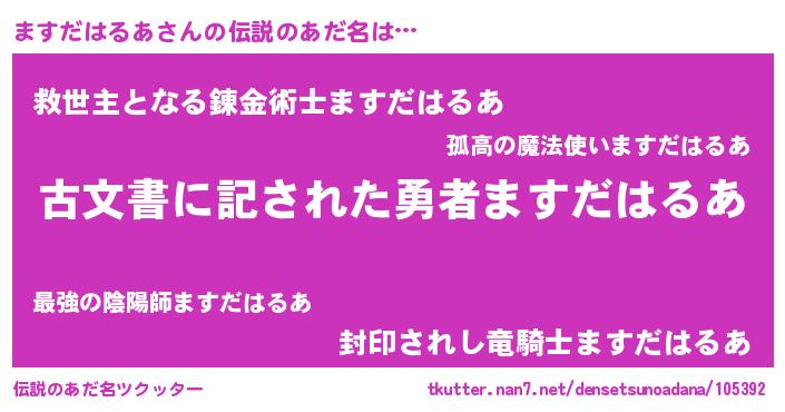 | ヒーロー風カッコイイあだ名 | 『ネオマスダハルア』『仮面マスダー』 |