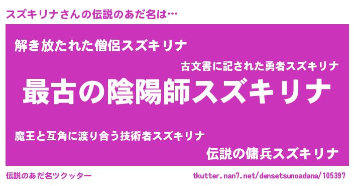 | ポケモン風あだ名 | 『スズキダネ』『ヒスズキリナ』 |