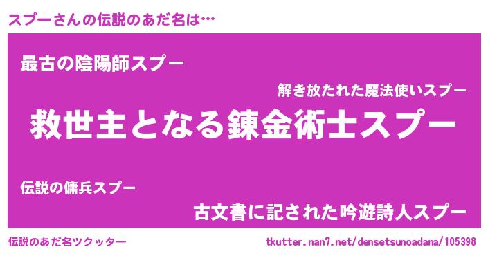 | ヒーロー風カッコイイあだ名 | 『仮面スプダー』『最強戦士スプー』 |