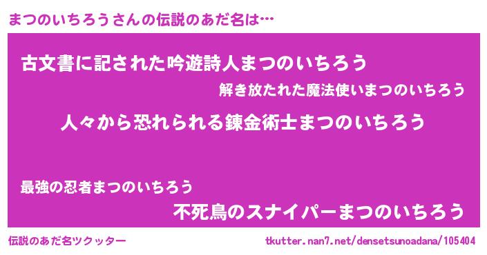 | ヘコむあだ名 | 『まつのいちろう(震え声)』『まつふぇ~』 |