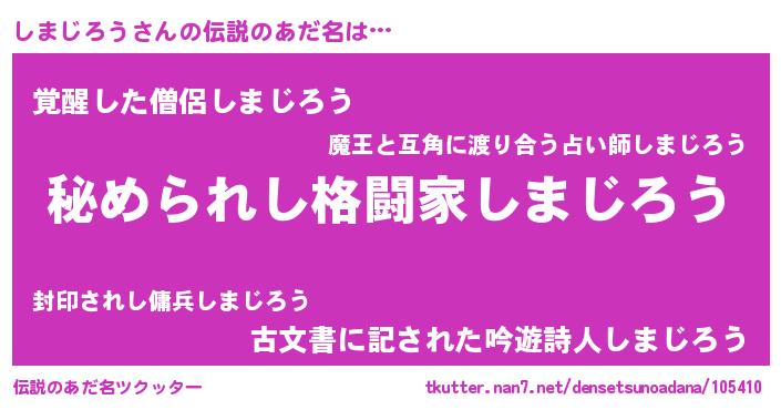| 意味不明あだ名 | 『自称しまじろう』 |