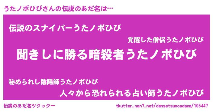 | ヘコむあだ名 | 『うたノボひび(爆)』『うたにー』 |