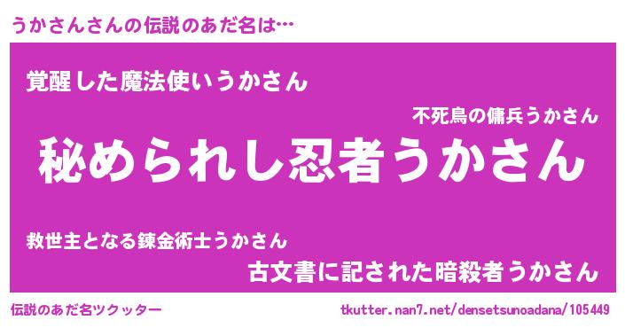 | 意味不明あだ名 | 『住所不定無職うかさん(40歳)』 |