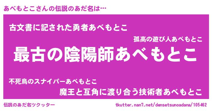 | ヒーロー風カッコイイあだ名 | 『仮面アベダー』『ネオアベモトコ』 |