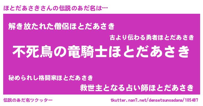| 意味不明あだ名 | 『住所不定無職ほとだあさき(4歳)』 |