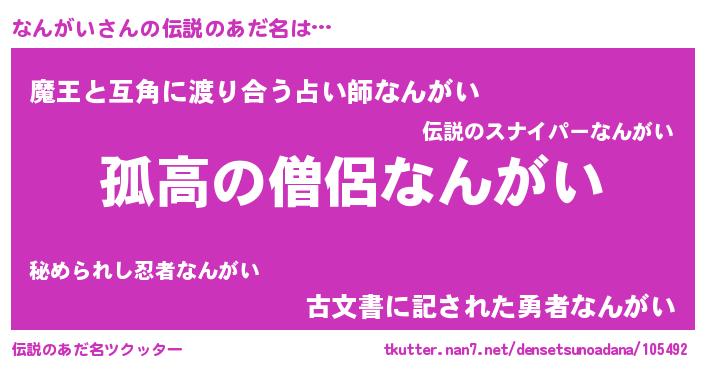 | ヒーロー風カッコイイあだ名 | 『暗黒騎士ナン』『慈愛の使者なんがい』 |