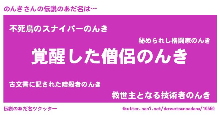 | ヒーロー風カッコイイあだ名 | 『仮面ノンダー』『銀牙騎士ノン』 |