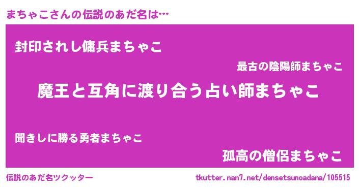 | ヒーロー風カッコイイあだ名 | 『サイバー戦士マチャコ』『暗黒騎士マチ』 |