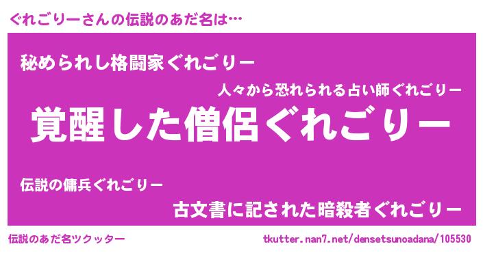 | 意味不明あだ名 | 『とにかく怪しいぐれごりー』 |