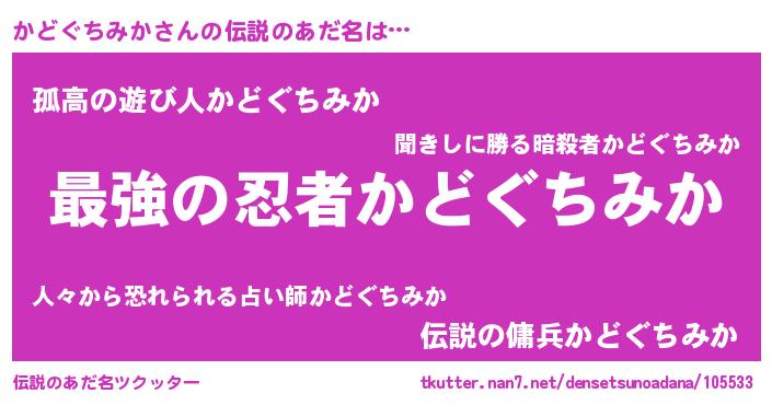 | 意味不明あだ名 | 『かどぐちみかフォーエバー』 |