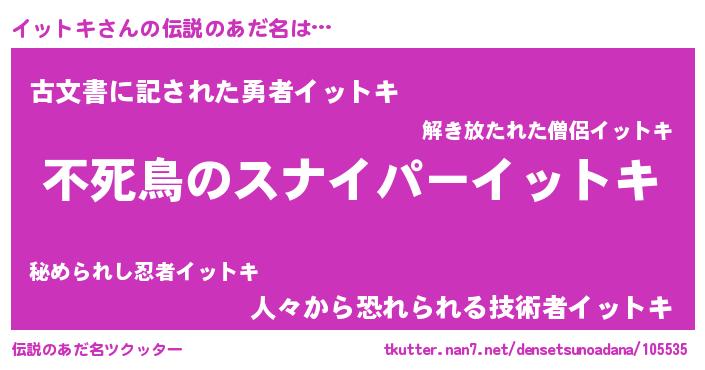 | 意味不明あだ名 | 『自称イットキ』『ペロリンイットキ』 |
