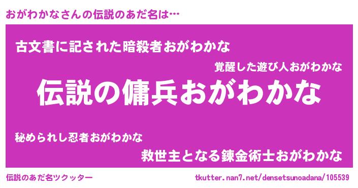 | 男性向けラノベタイトル風あだ名 | 『魔法科高校のおがわかな』 |