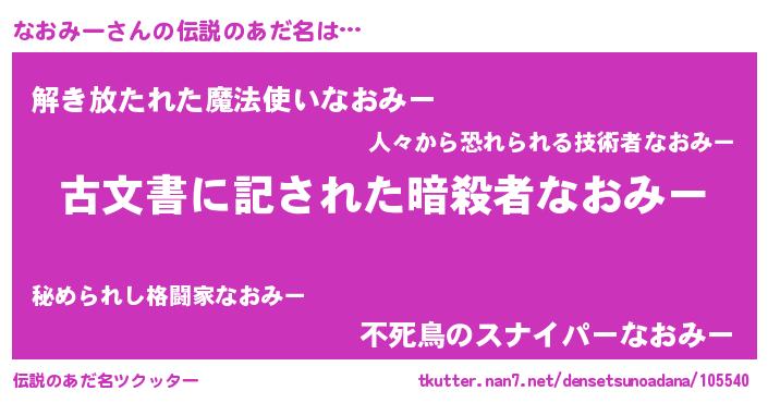| ヒーロー風カッコイイあだ名 | 『ネオナオミー』『銀牙騎士ナオ』 |