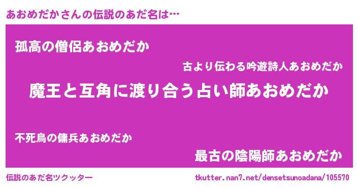| 意味不明あだ名 | 『住所不定無職あおめだか(39歳)』 |