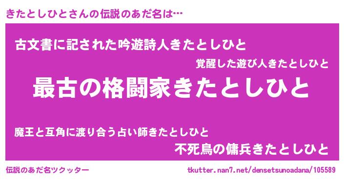 | 意味不明あだ名 | 『住所不定無職きたとしひと(9歳)』 |