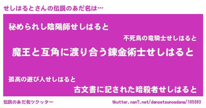 | 胡散臭い通販商品みたいなあだ名 | 『お金では代えられない隕石のかけら…その名も「せしはると」』 |