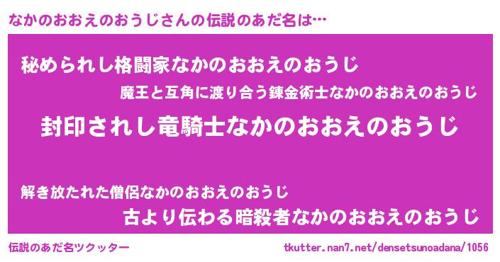 | 欧米人風あだ名 | 『ダレノガレなかのおおえのおうじ』 |