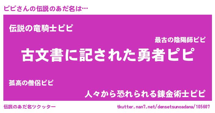 | ヘコむあだ名 | 『ピピ(苦笑)』『ピピにー』『ピピお』 |