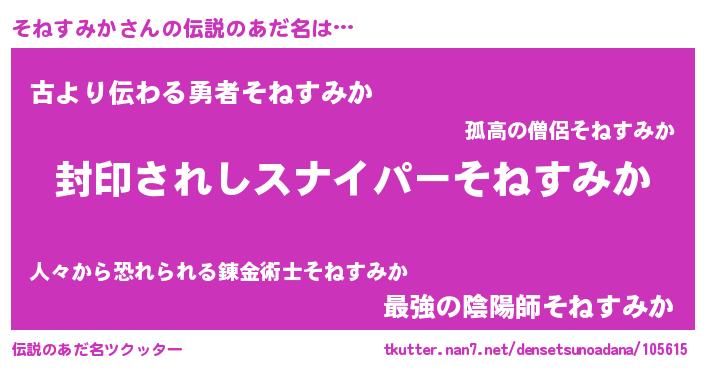 | 男性向けラノベタイトル風あだ名 | 『そねすみかに滅ぼされるだけの簡単なお仕事です』 |