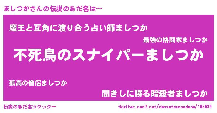 | 胡散臭い通販商品みたいなあだ名 | 『モテモテ間違いなし霊験あらたかなお札…その名も「ましつか」』 |